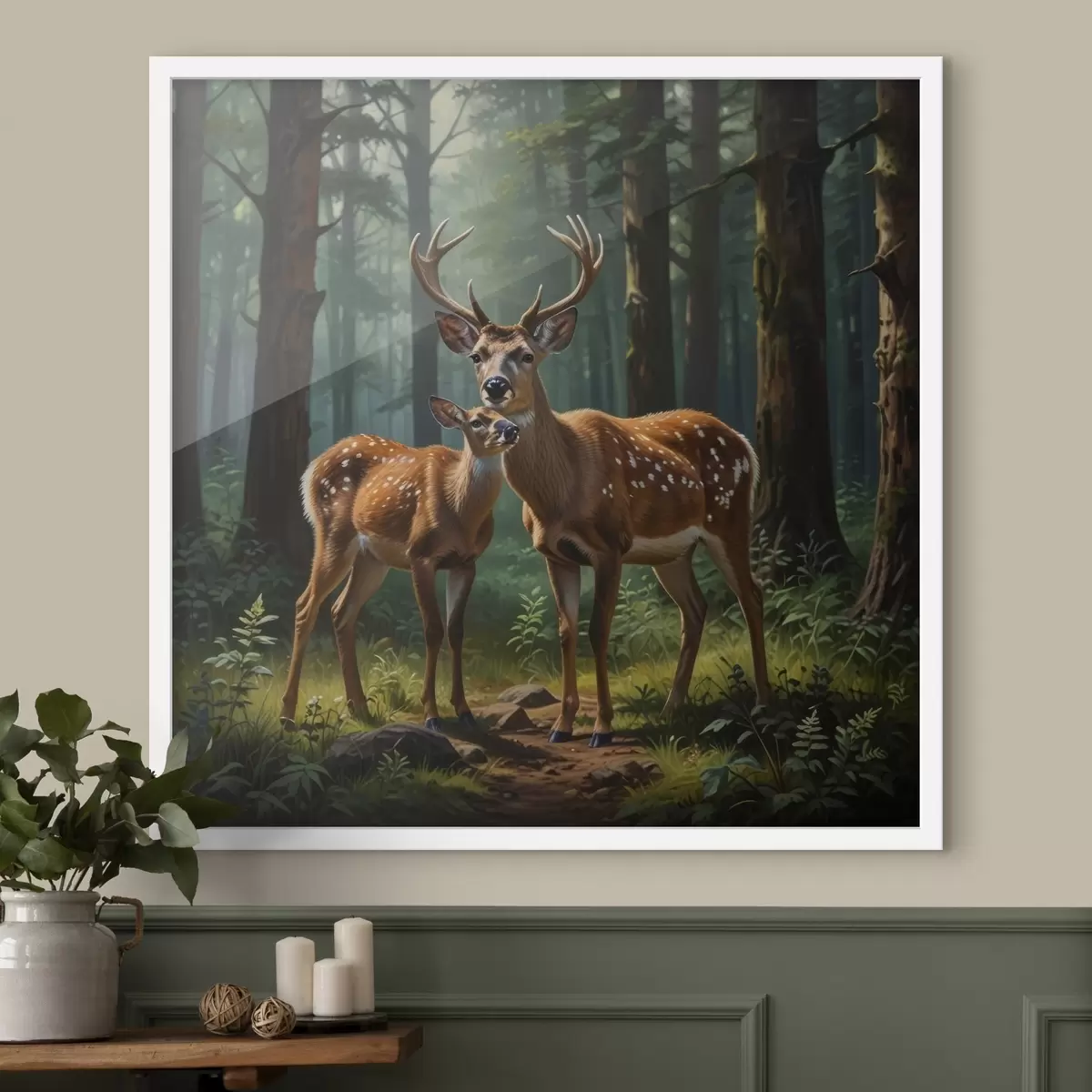 Poster ciervo con cervatillo en el bosque Nr f45732
