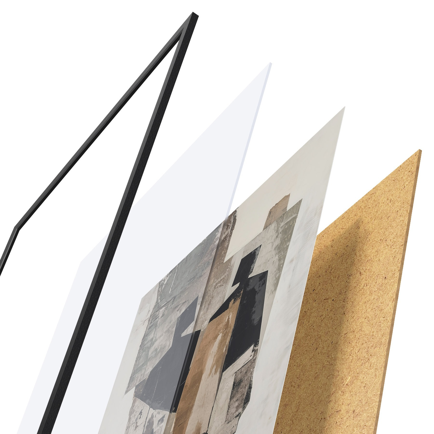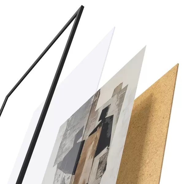 El póster consta de marco, plexiglás, imagen impresa y soporte de aglomerado. El póster puede colgarse inmediatamente en la pared gracias a los soportes de la parte posterior.