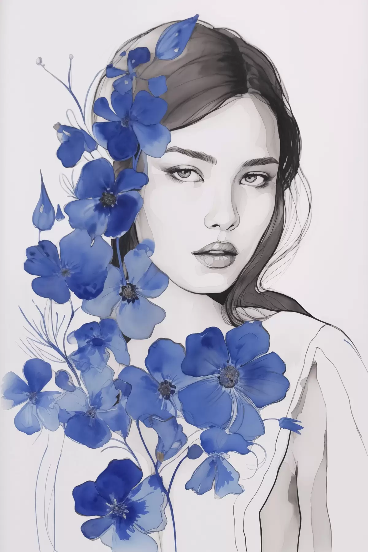 Poster Niña y flores azules f45757