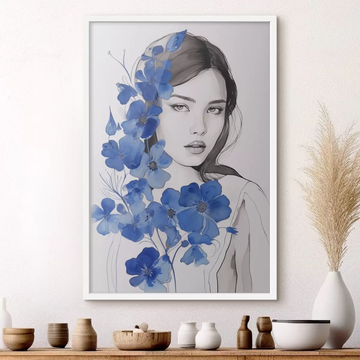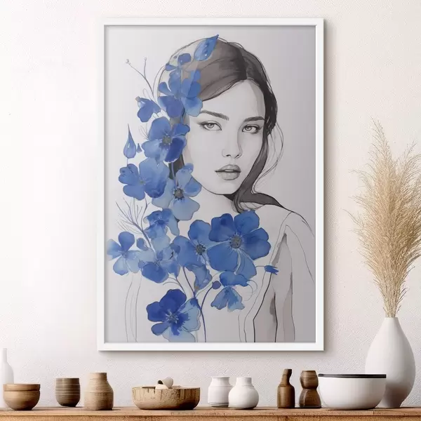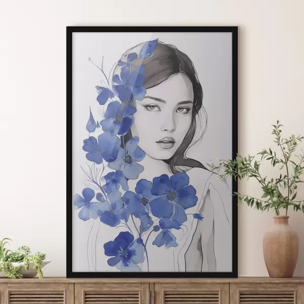 Poster Niña y flores azules Nr f45757