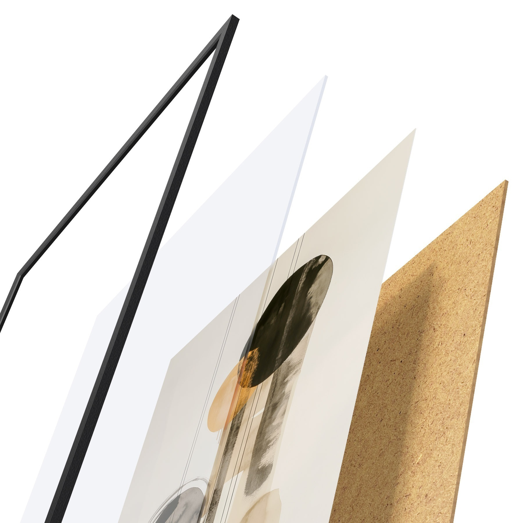El póster consta de marco, plexiglás, imagen impresa y soporte de aglomerado. El póster puede colgarse inmediatamente en la pared gracias a los soportes de la parte posterior.