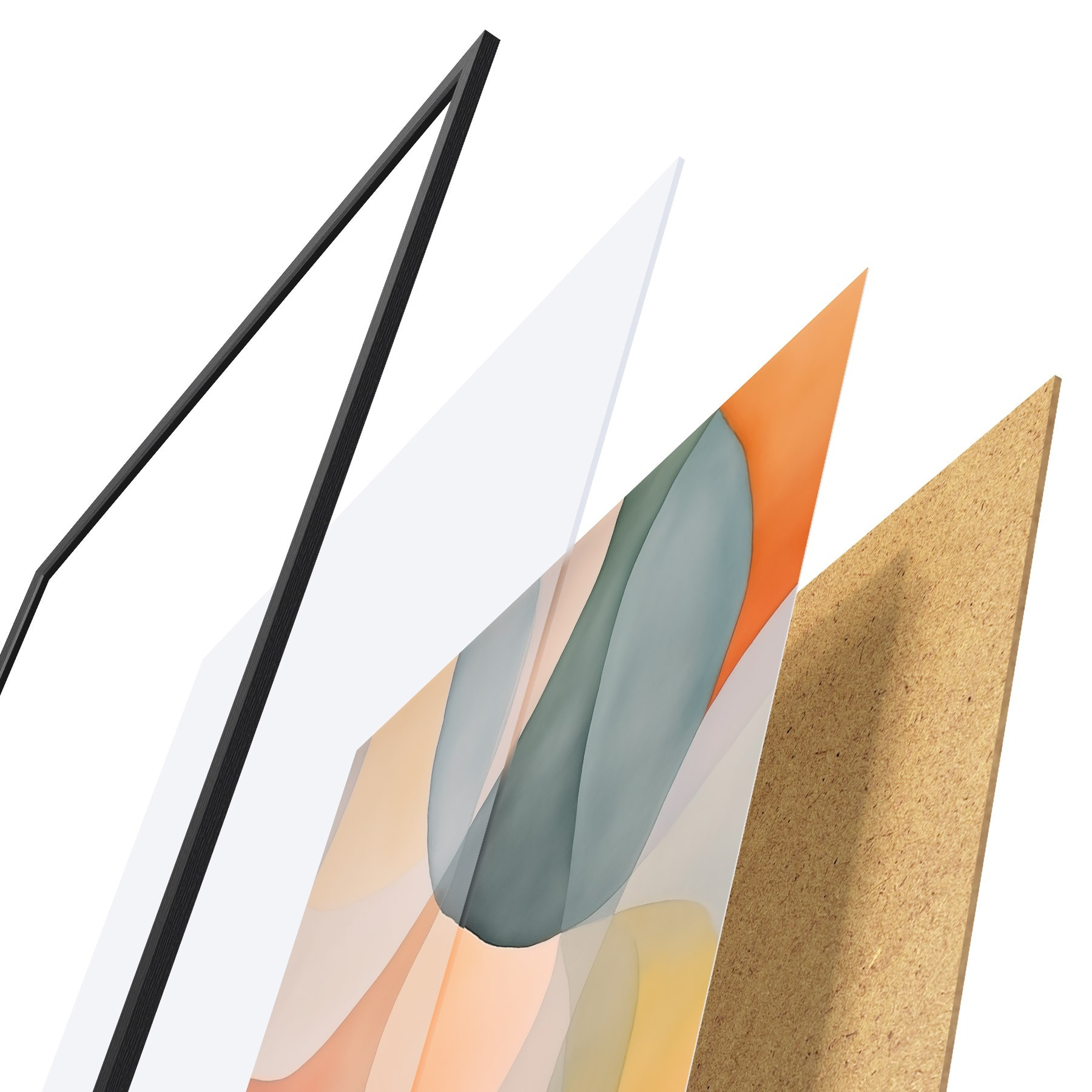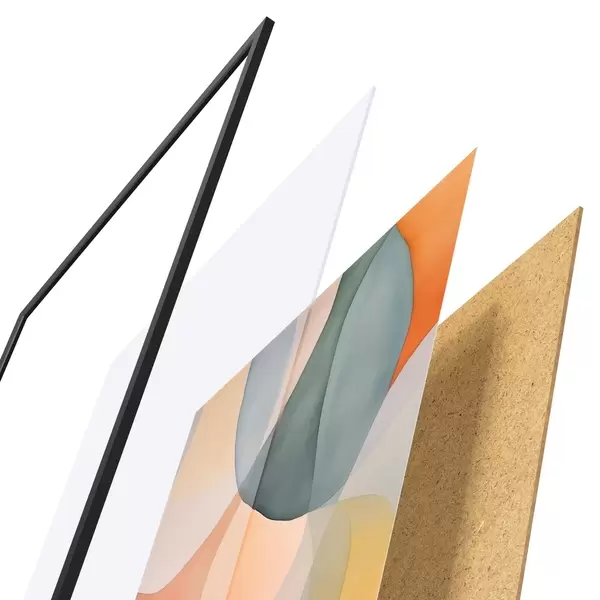El póster consta de marco, plexiglás, imagen impresa y soporte de aglomerado. El póster puede colgarse inmediatamente en la pared gracias a los soportes de la parte posterior.
