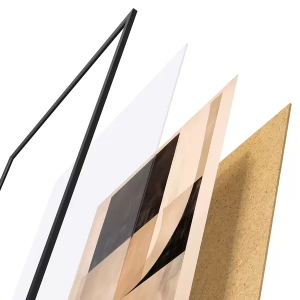 El póster consta de marco, plexiglás, imagen impresa y soporte de aglomerado. El póster puede colgarse inmediatamente en la pared gracias a los soportes de la parte posterior.