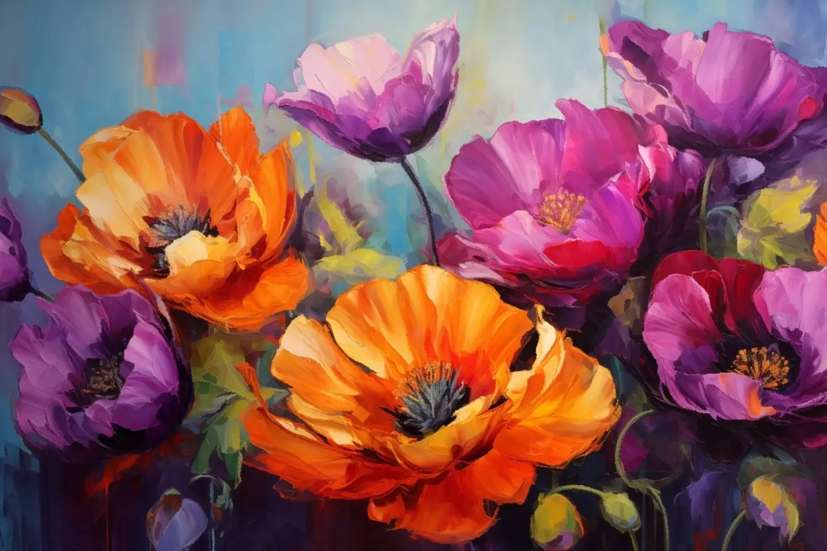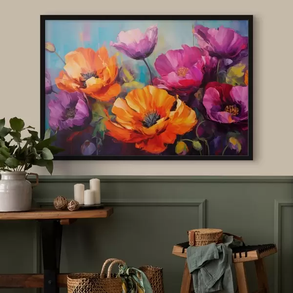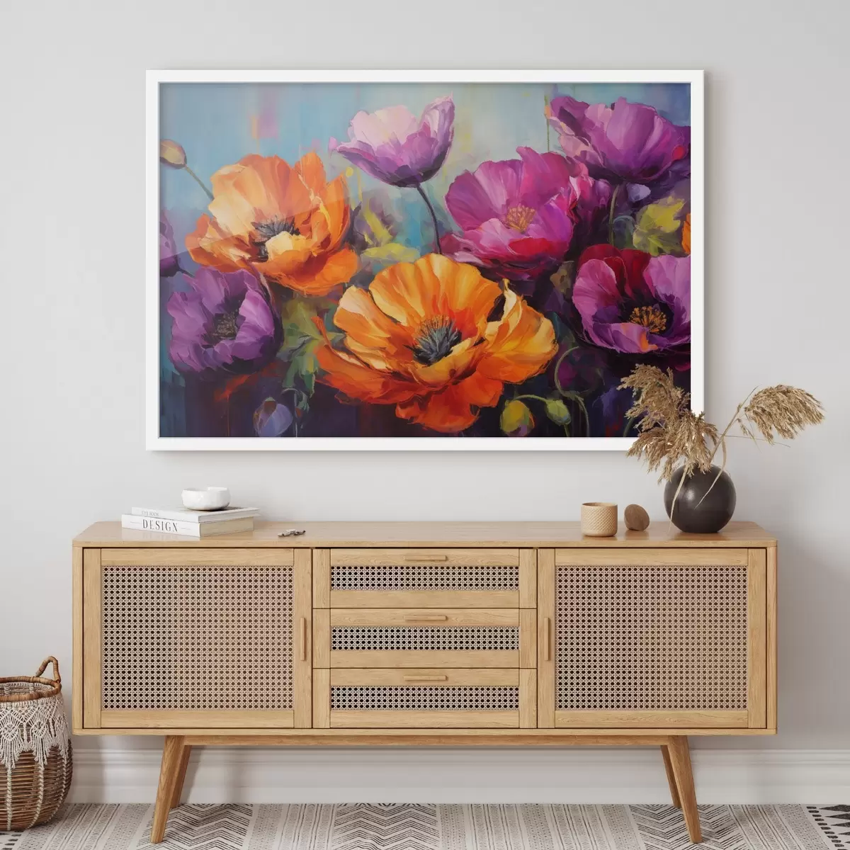 Poster Amapolas brillantes en tonos morados y naranjas Nr f45804