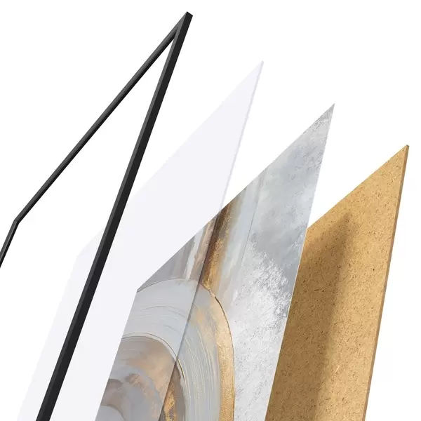 El póster consta de marco, plexiglás, imagen impresa y soporte de aglomerado. El póster puede colgarse inmediatamente en la pared gracias a los soportes de la parte posterior.
