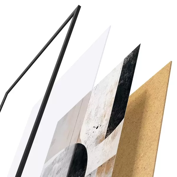 El póster consta de marco, plexiglás, imagen impresa y soporte de aglomerado. El póster puede colgarse inmediatamente en la pared gracias a los soportes de la parte posterior.