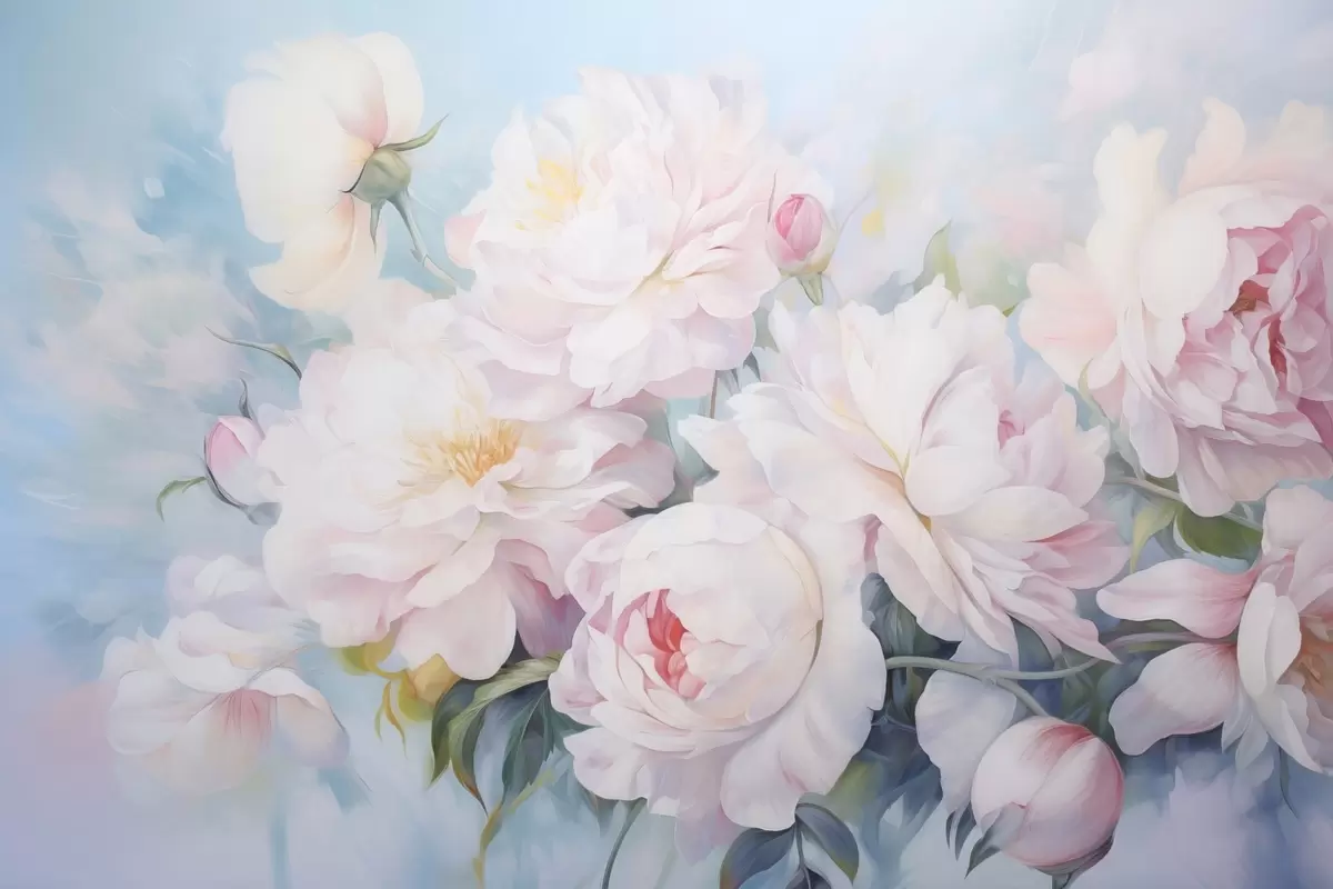 Poster Delicadas peonías rosas sobre un fondo azul cielo Nr f45813