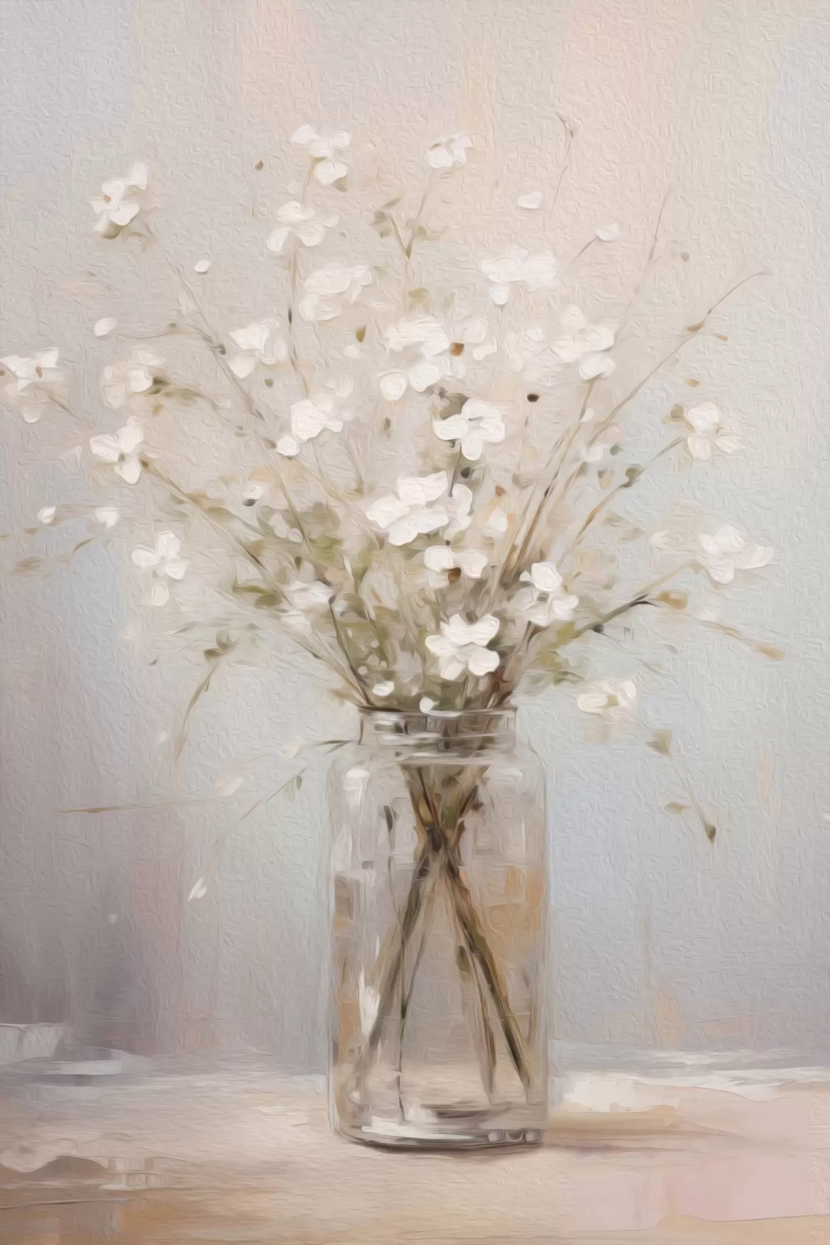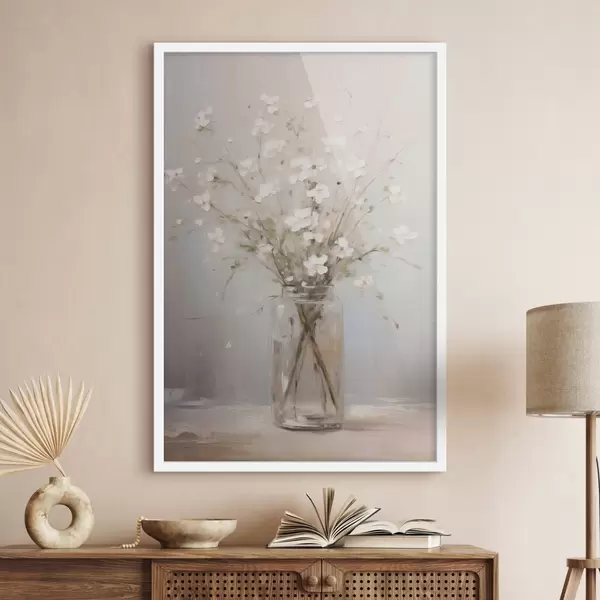 Poster Un ramo de flores blancas en un jarrón de cristal transparente Nr f45814