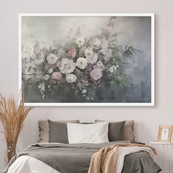 Poster Un romántico ramo de flores rosas y blancas Nr f45817