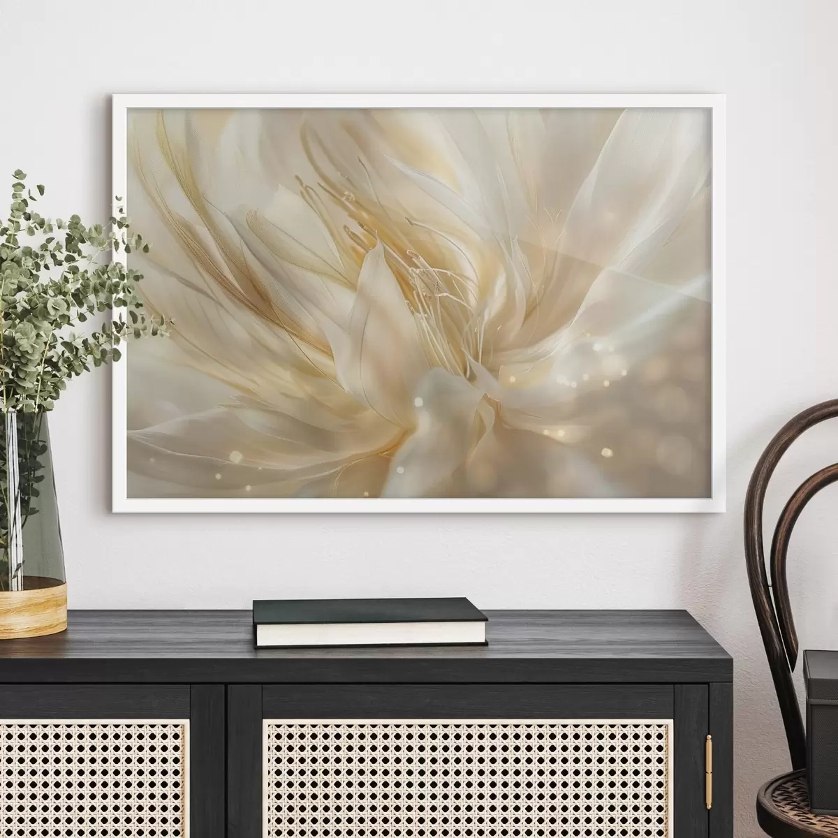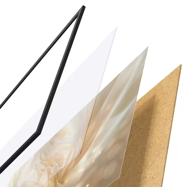 El póster consta de marco, plexiglás, imagen impresa y soporte de aglomerado. El póster puede colgarse inmediatamente en la pared gracias a los soportes de la parte posterior.