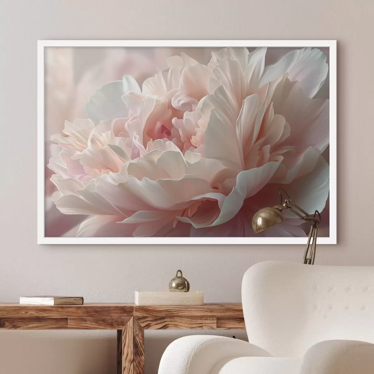 Poster Peonía en flor en tonos rosa y beige Nr f45825