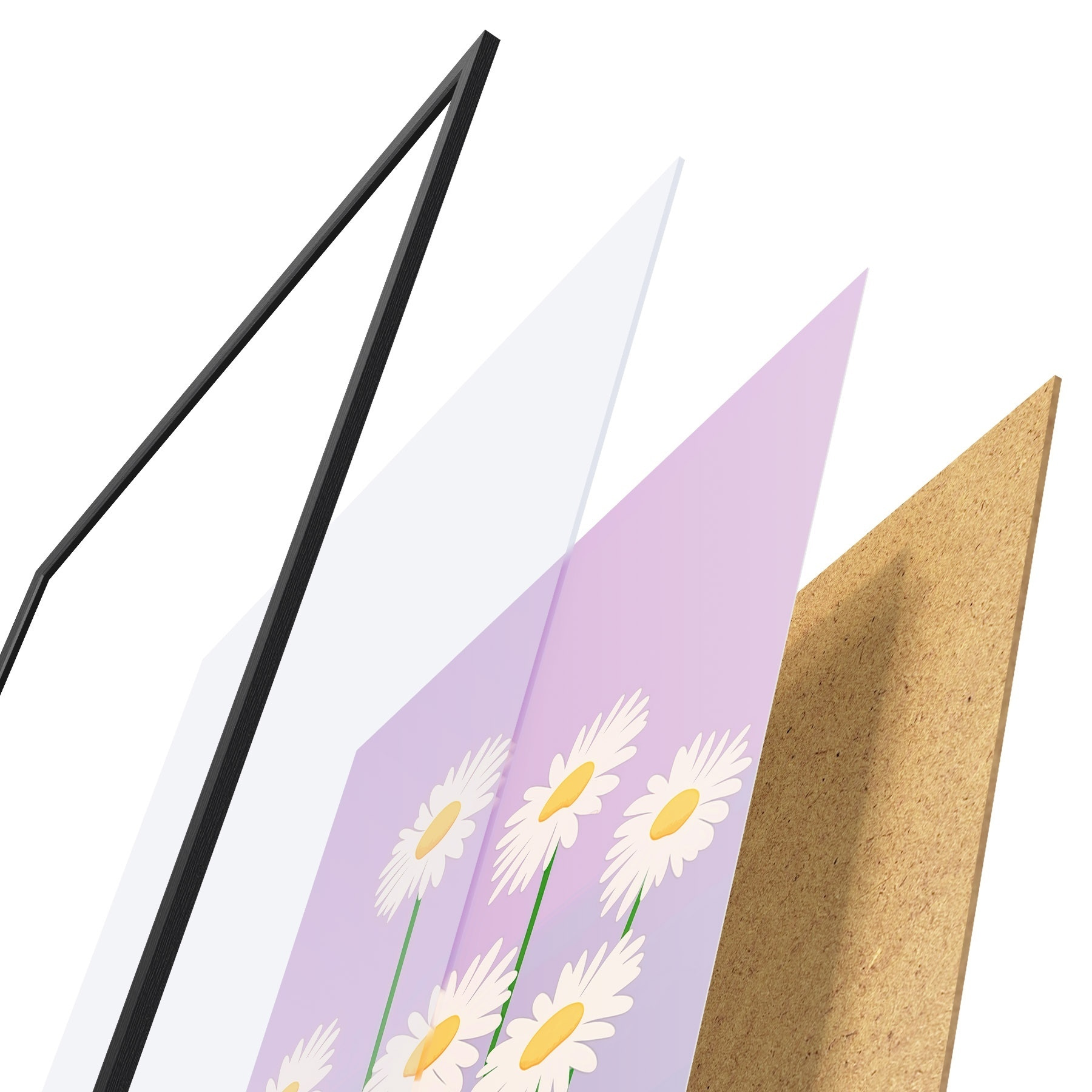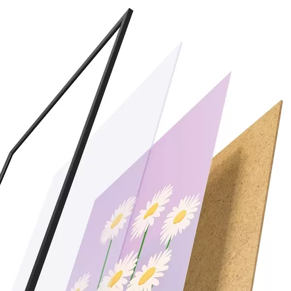 El póster consta de marco, plexiglás, imagen impresa y soporte de aglomerado. El póster puede colgarse inmediatamente en la pared gracias a los soportes de la parte posterior.