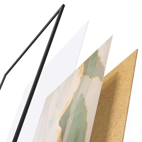 El póster consta de marco, plexiglás, imagen impresa y soporte de aglomerado. El póster puede colgarse inmediatamente en la pared gracias a los soportes de la parte posterior.