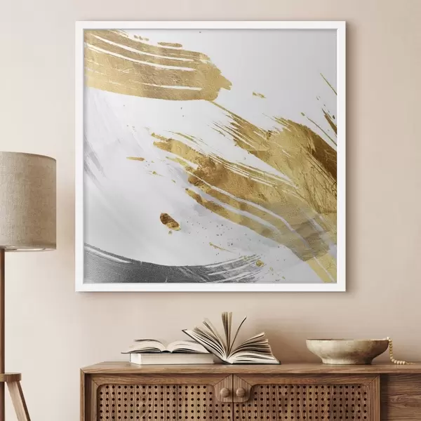 Poster Pinceladas dinámicas en tonos blancos y amarillo grisáceos f45866