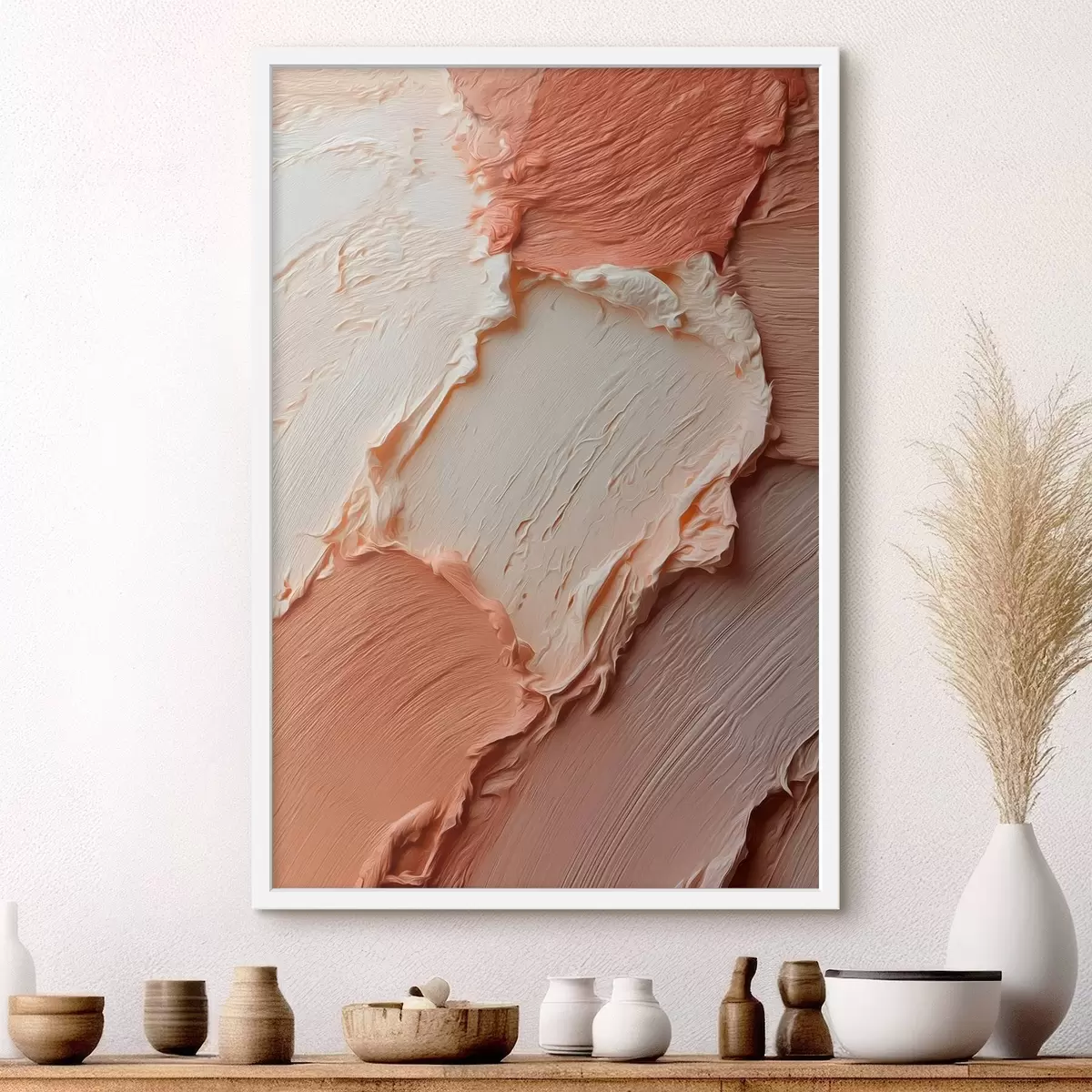 Poster Pinceladas con textura crema-melocotón, impasto rico f45869