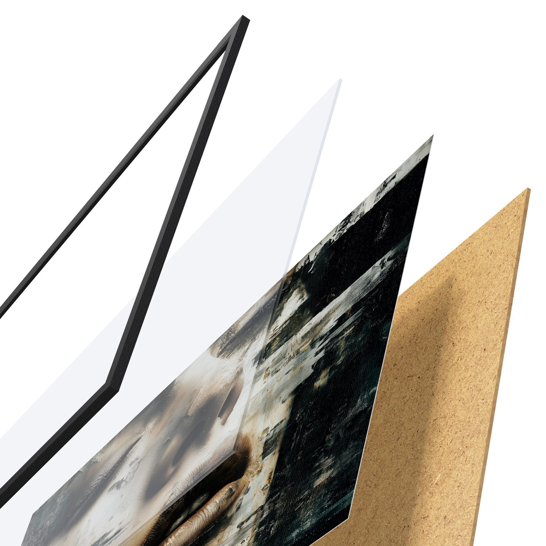 El póster consta de marco, plexiglás, imagen impresa y soporte de aglomerado. El póster puede colgarse inmediatamente en la pared gracias a los soportes de la parte posterior.