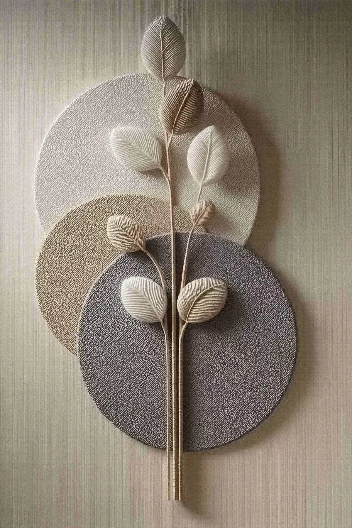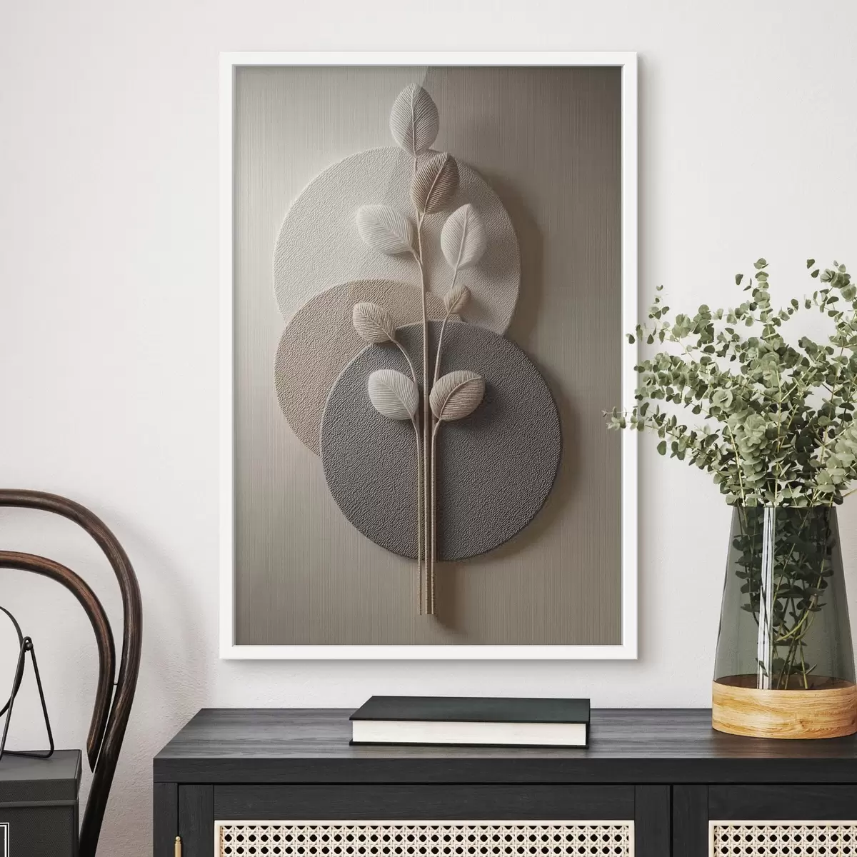 Poster Círculos en relieve y una rama en tonos neutros cálidos f45883