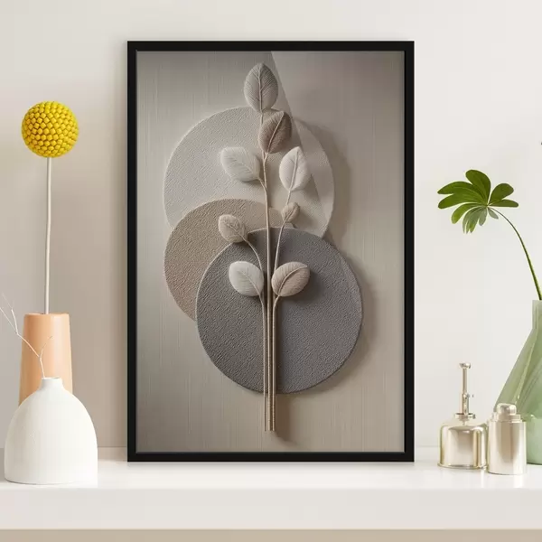 Poster Círculos en relieve y una rama en tonos neutros cálidos Nr f45883