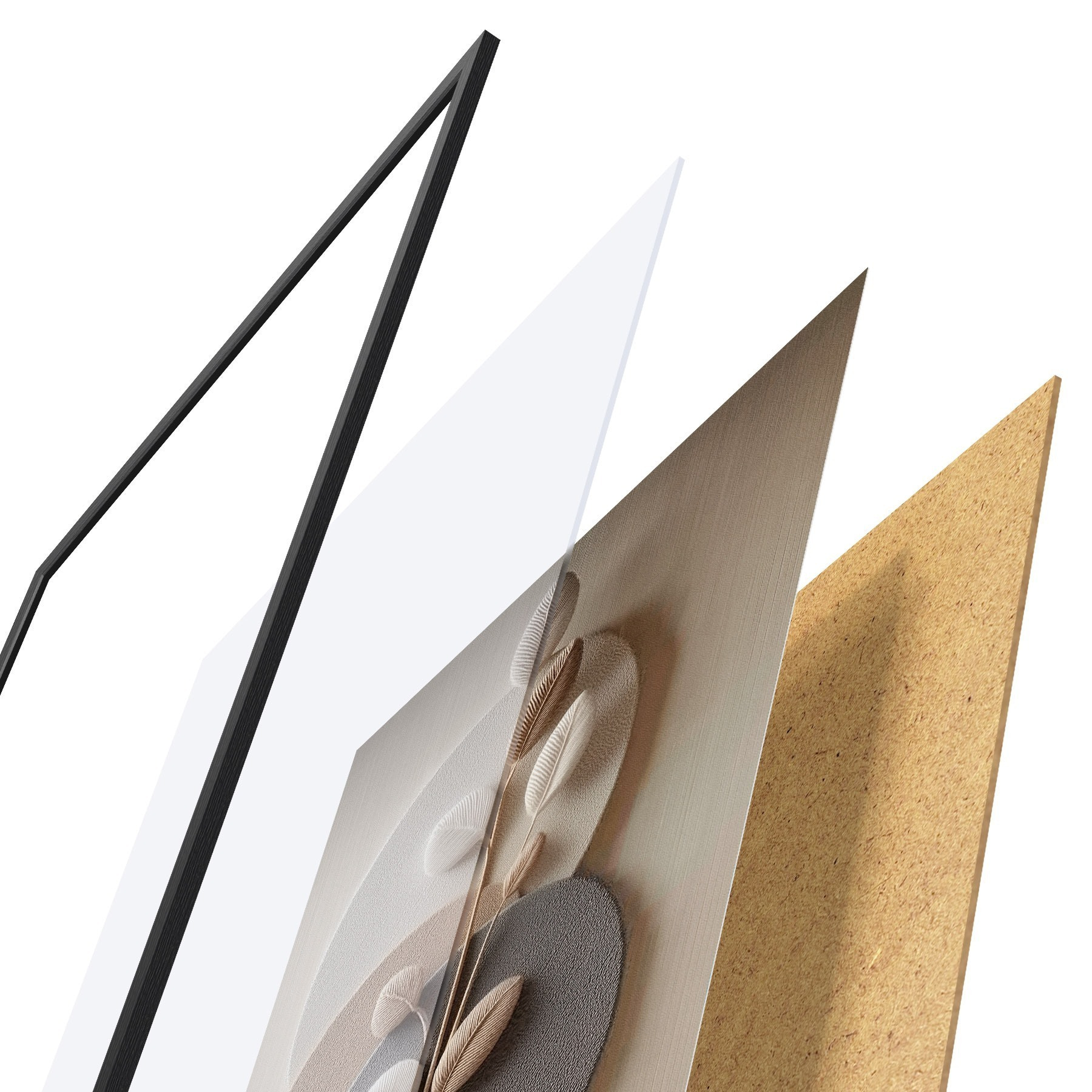 El póster consta de marco, plexiglás, imagen impresa y soporte de aglomerado. El póster puede colgarse inmediatamente en la pared gracias a los soportes de la parte posterior.