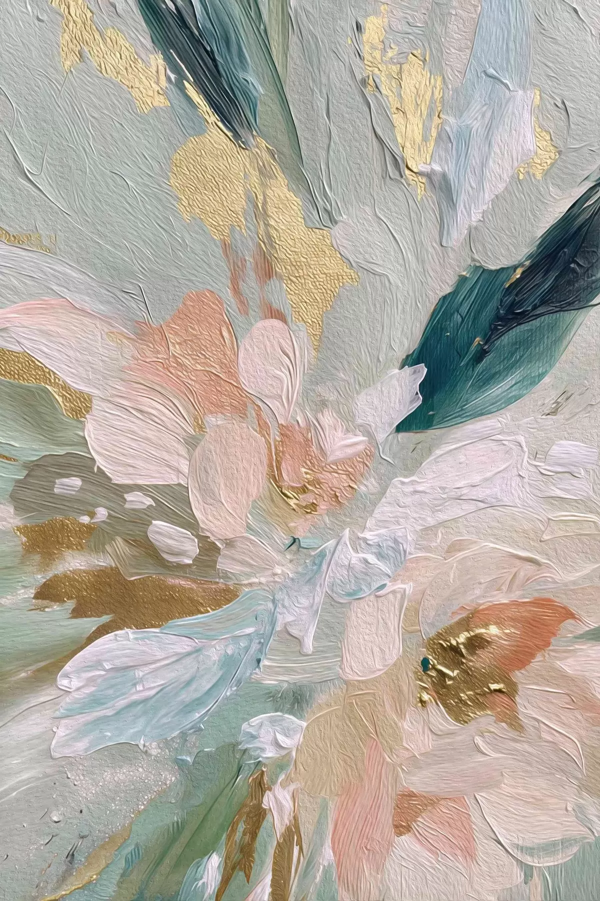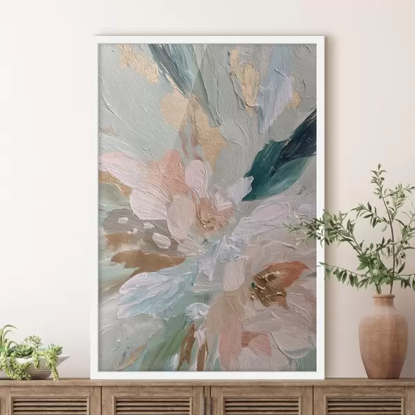 Poster Pinceladas florales en tonos pastel con motas amarillas f45899