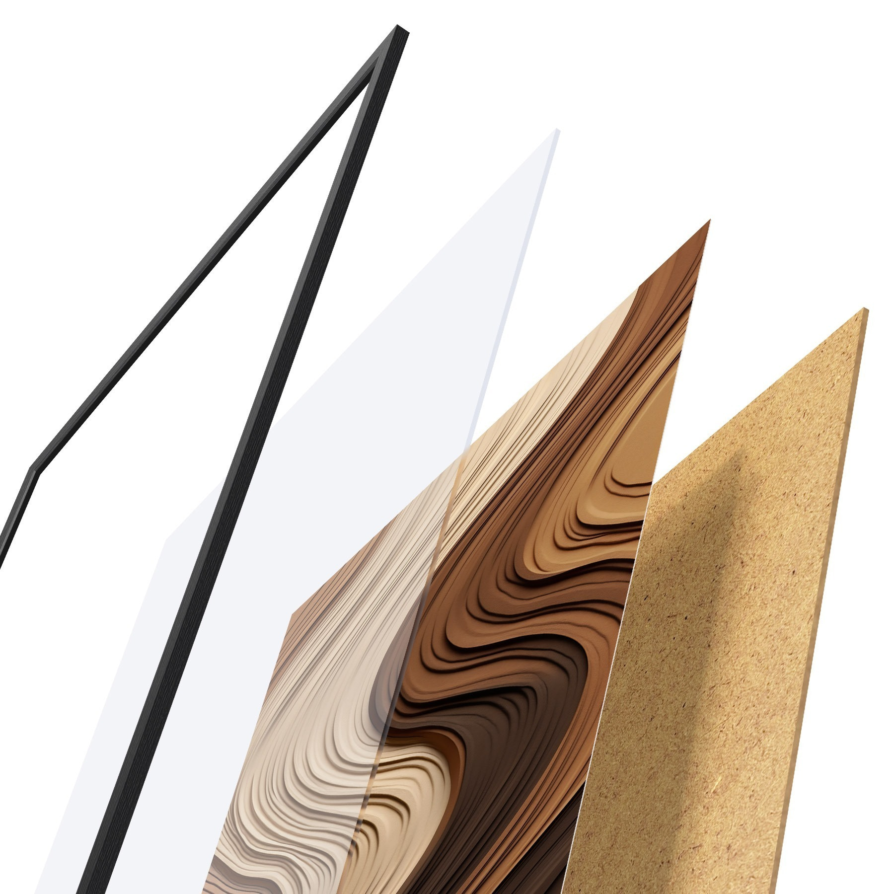 El póster consta de marco, plexiglás, imagen impresa y soporte de aglomerado. El póster puede colgarse inmediatamente en la pared gracias a los soportes de la parte posterior.