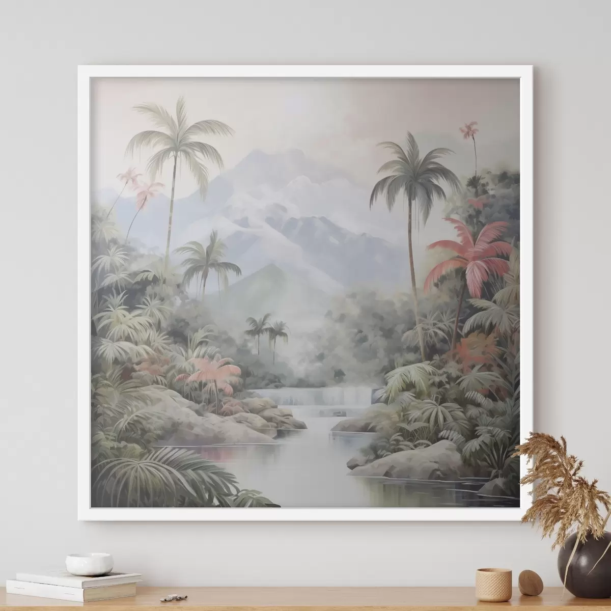 Poster Río en bosque tropical frente a las montañas Nr f45913
