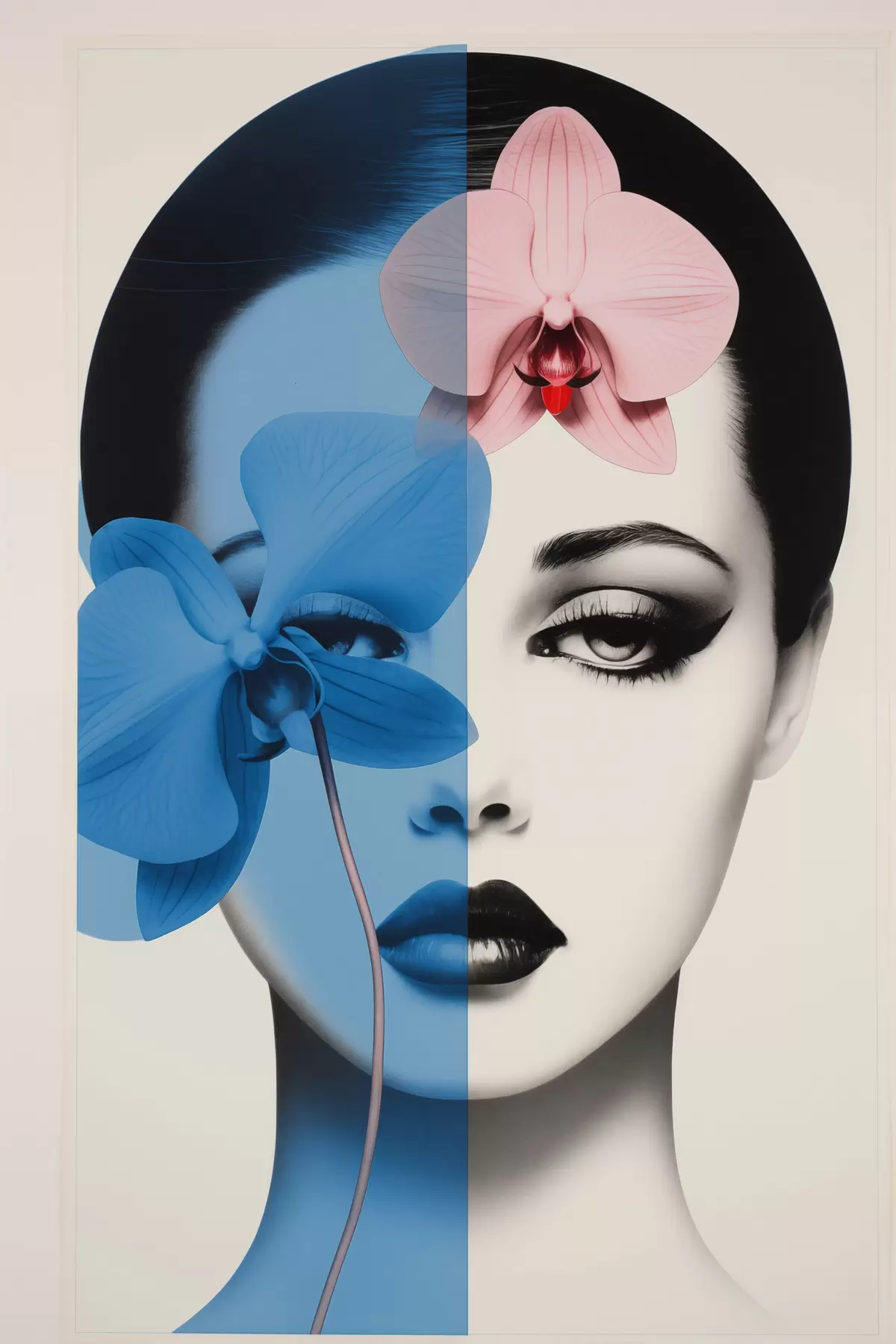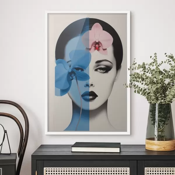 Poster Retrato abstracto de una mujer con orquídeas f45924