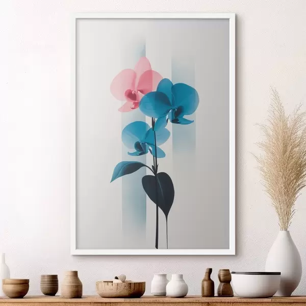 Poster Orquídeas con hojas sobre fondo blanco con rayas verticales f45925
