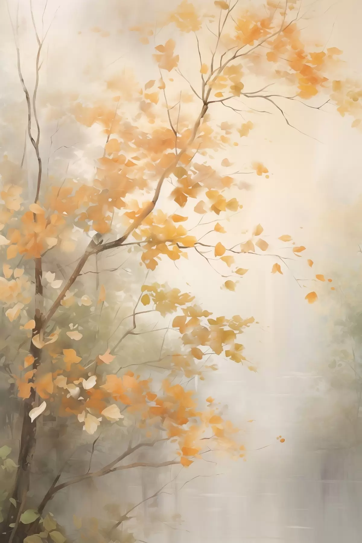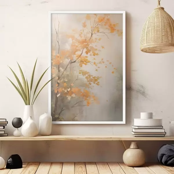 Poster Ramas de árboles otoñales con hojas anaranjadas en un bosque con una luz suave Nr f45940