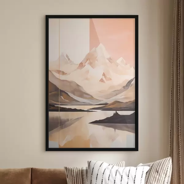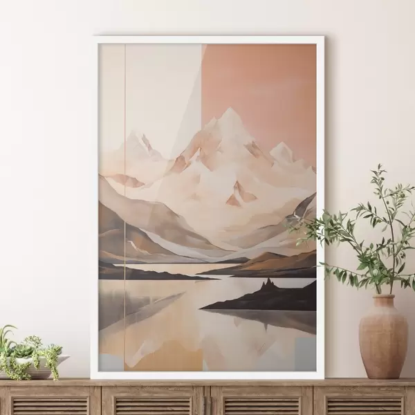 Poster Paisaje abstracto con montañas y un lago, colores pastel, estilo minimalista Nr f45949