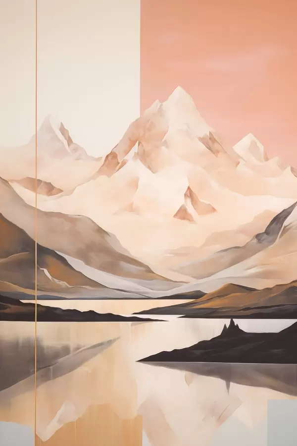 Poster Paisaje abstracto con montañas y un lago, colores pastel, estilo minimalista Nr f45949