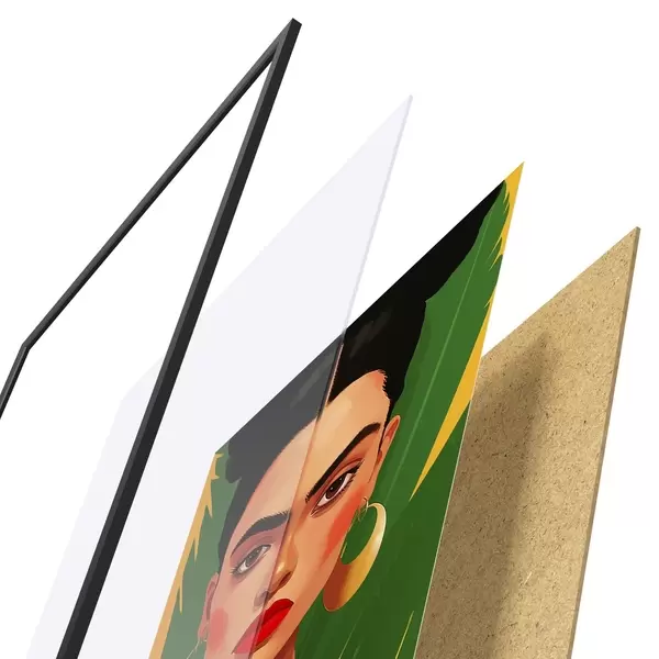 El póster consta de marco, plexiglás, imagen impresa y soporte de aglomerado. El póster puede colgarse inmediatamente en la pared gracias a los soportes de la parte posterior.