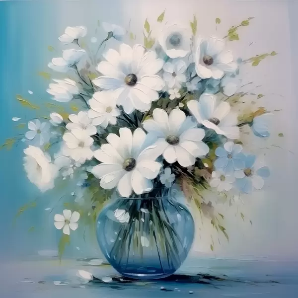 Poster Ramo de margaritas en un jarrón azul Nr f45959