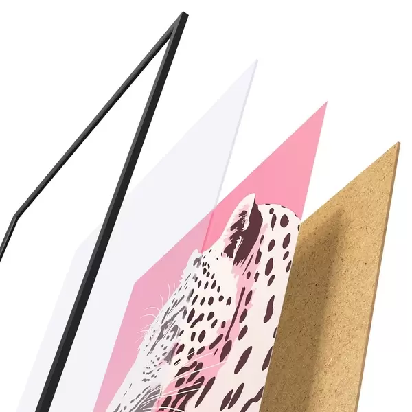 El póster consta de marco, plexiglás, imagen impresa y soporte de aglomerado. El póster puede colgarse inmediatamente en la pared gracias a los soportes de la parte posterior.