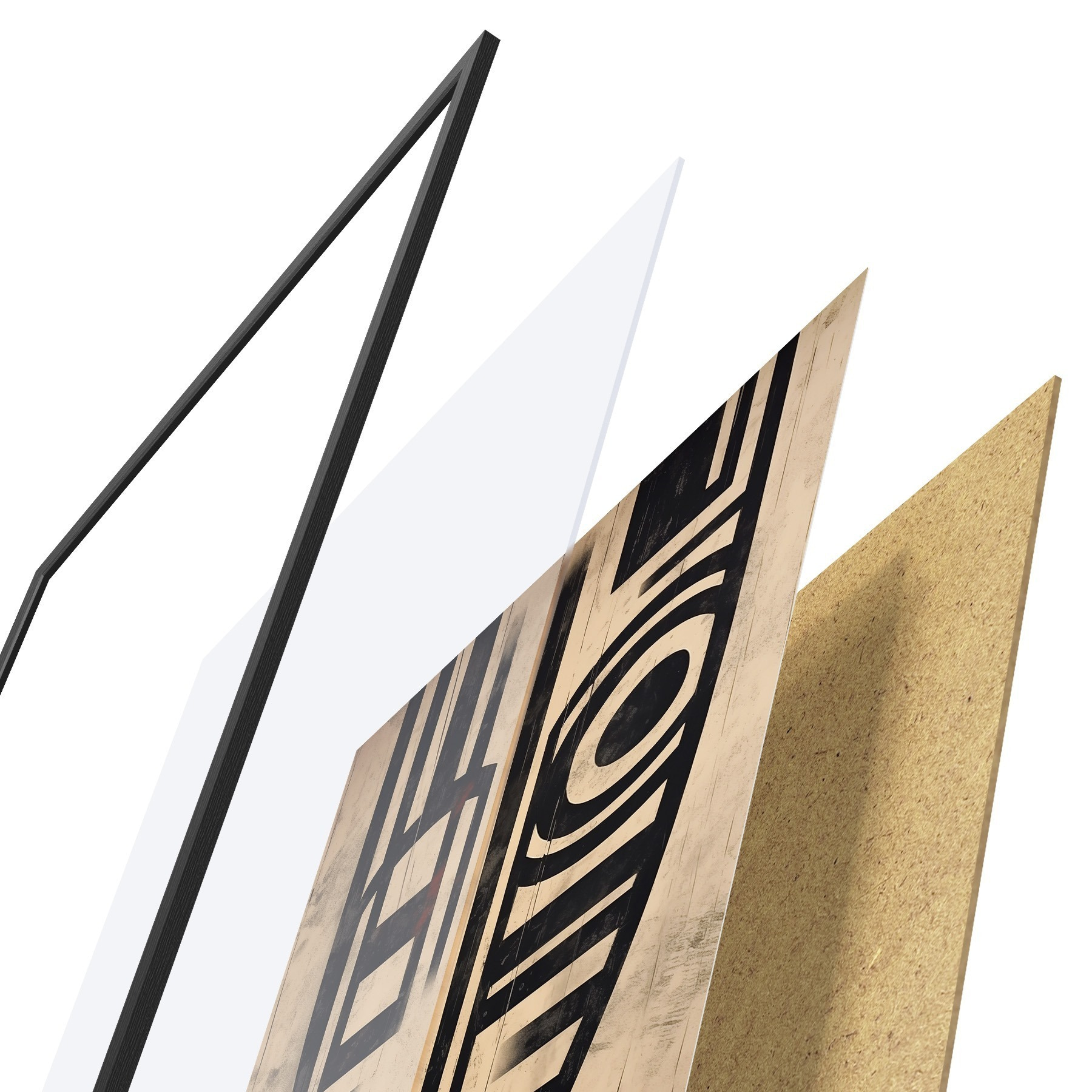 El póster consta de marco, plexiglás, imagen impresa y soporte de aglomerado. El póster puede colgarse inmediatamente en la pared gracias a los soportes de la parte posterior.
