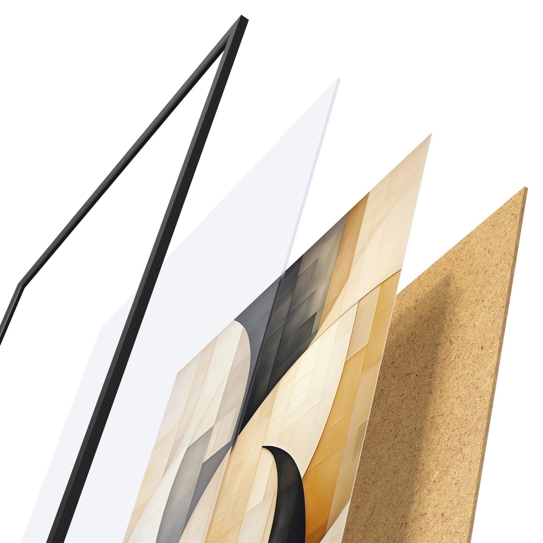 El póster consta de marco, plexiglás, imagen impresa y soporte de aglomerado. El póster puede colgarse inmediatamente en la pared gracias a los soportes de la parte posterior.