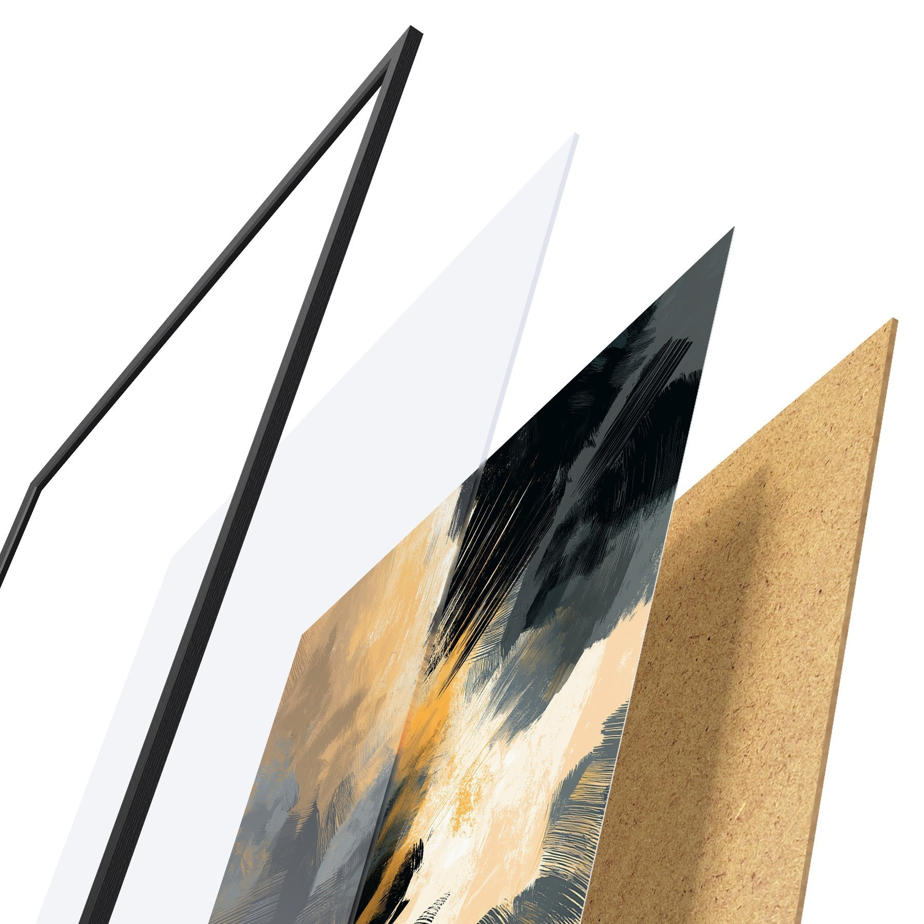 El póster consta de marco, plexiglás, imagen impresa y soporte de aglomerado. El póster puede colgarse inmediatamente en la pared gracias a los soportes de la parte posterior.
