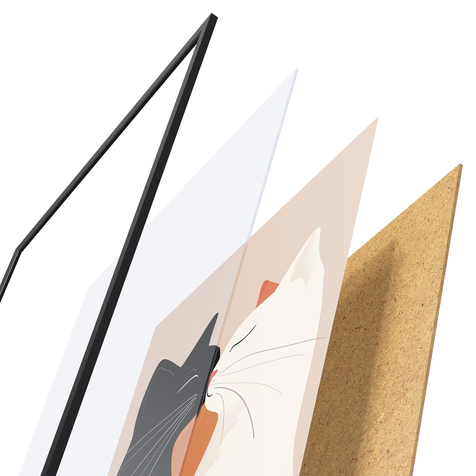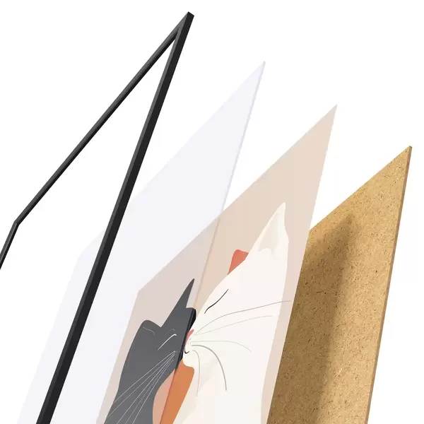 El póster consta de marco, plexiglás, imagen impresa y soporte de aglomerado. El póster puede colgarse inmediatamente en la pared gracias a los soportes de la parte posterior.