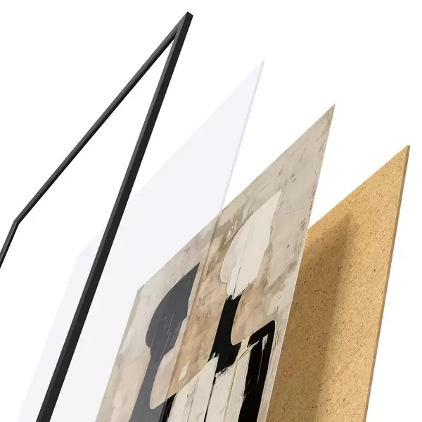 El póster consta de marco, plexiglás, imagen impresa y soporte de aglomerado. El póster puede colgarse inmediatamente en la pared gracias a los soportes de la parte posterior.