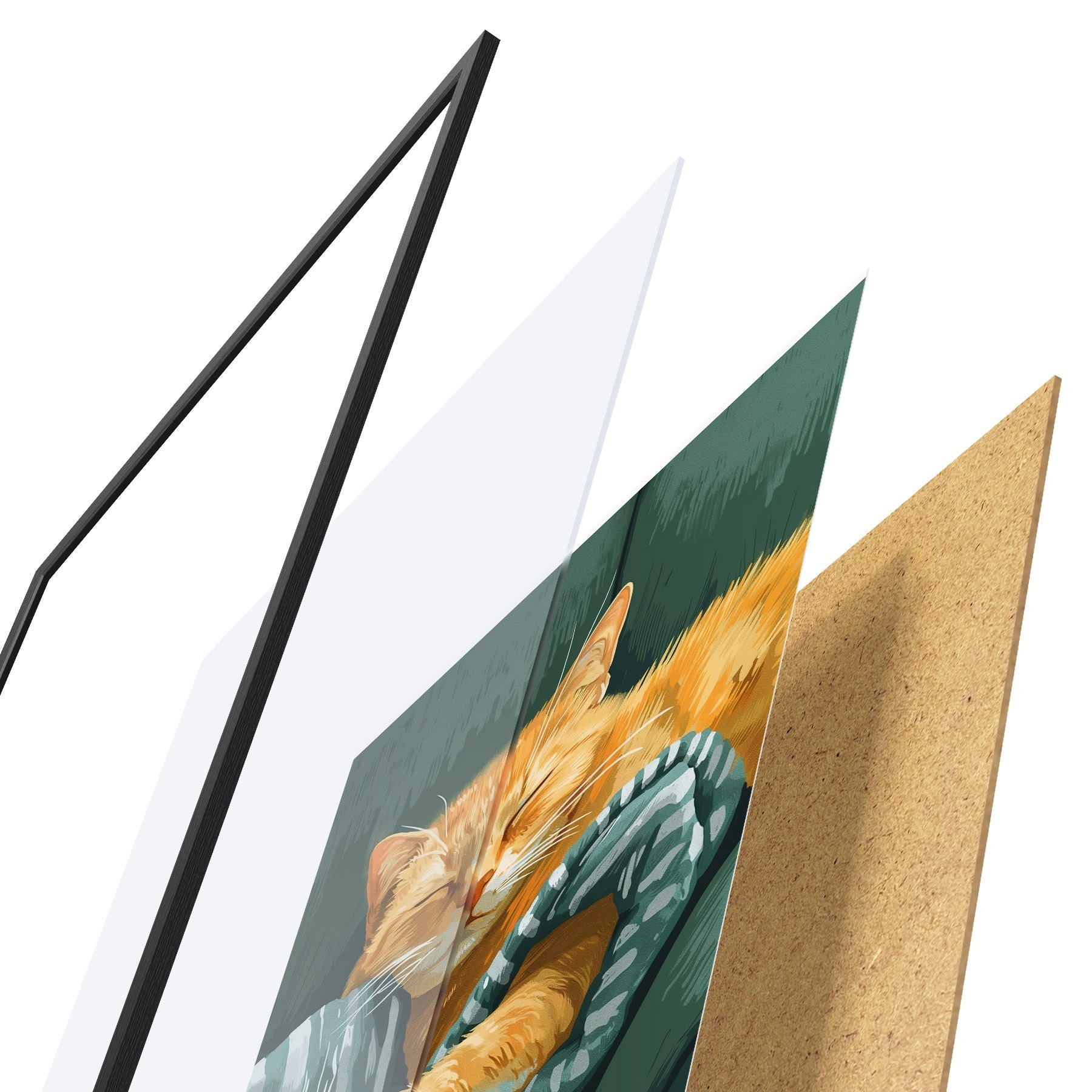 El póster consta de marco, plexiglás, imagen impresa y soporte de aglomerado. El póster puede colgarse inmediatamente en la pared gracias a los soportes de la parte posterior.