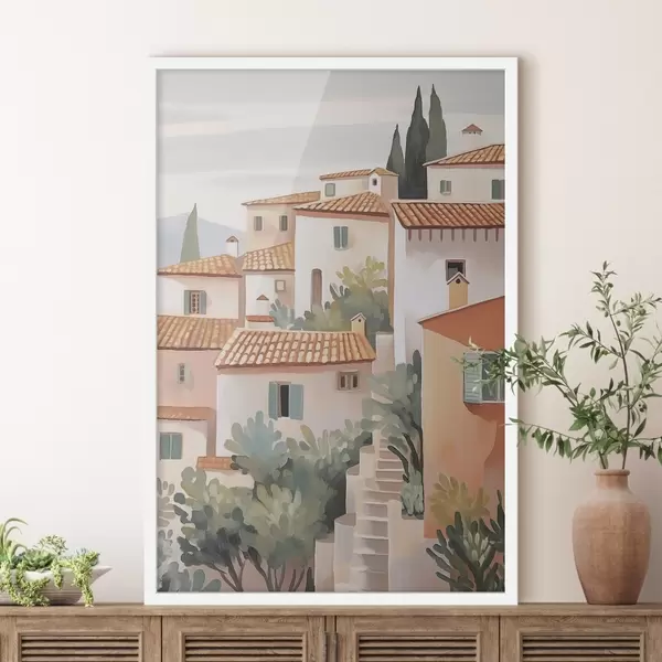 El póster consta de marco, plexiglás, imagen impresa y soporte de aglomerado. El póster puede colgarse inmediatamente en la pared gracias a los soportes de la parte posterior.