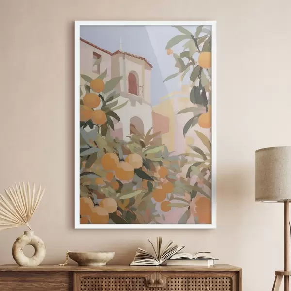 Poster Naranjas en una rama delante de la casa Nr f46060