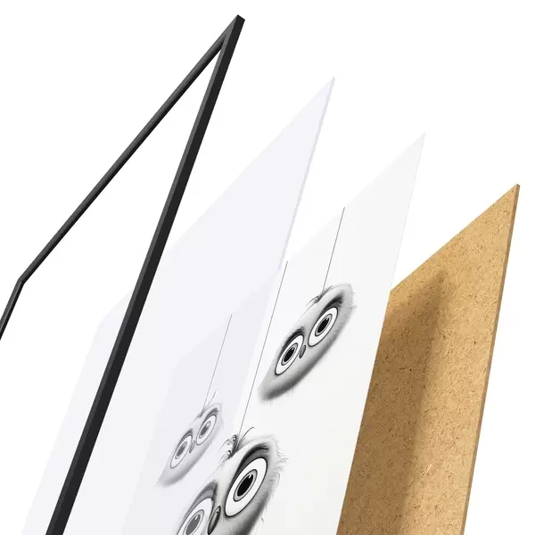 El póster consta de marco, plexiglás, imagen impresa y soporte de aglomerado. El póster puede colgarse inmediatamente en la pared gracias a los soportes de la parte posterior.
