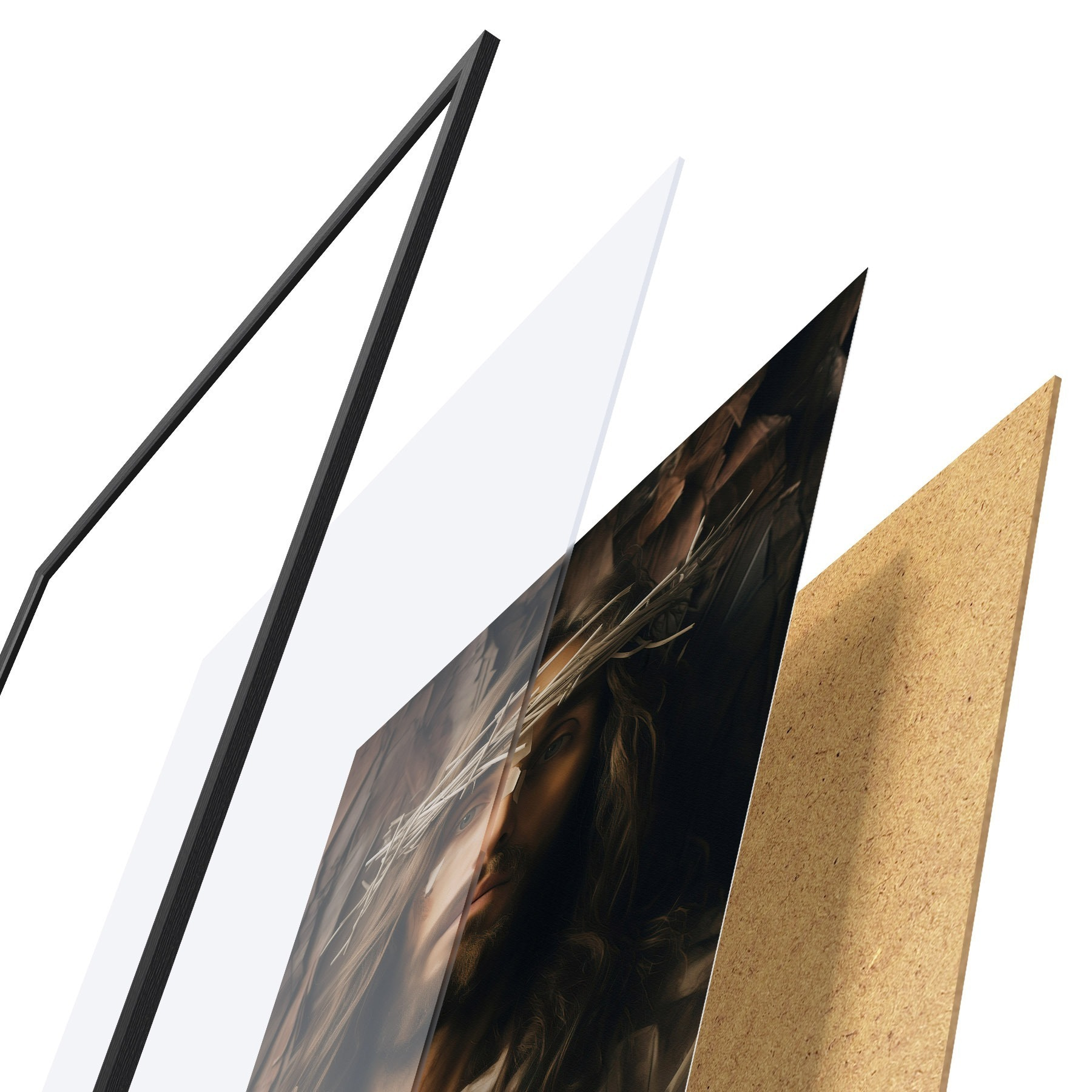 El póster consta de marco, plexiglás, imagen impresa y soporte de aglomerado. El póster puede colgarse inmediatamente en la pared gracias a los soportes de la parte posterior.