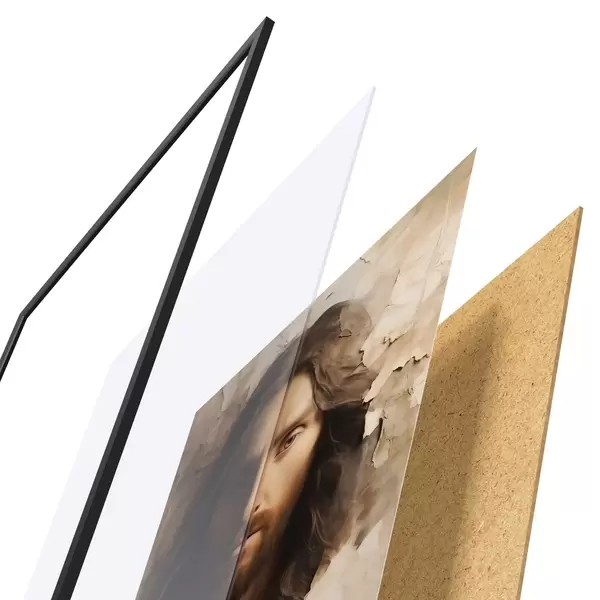 El póster consta de marco, plexiglás, imagen impresa y soporte de aglomerado. El póster puede colgarse inmediatamente en la pared gracias a los soportes de la parte posterior.