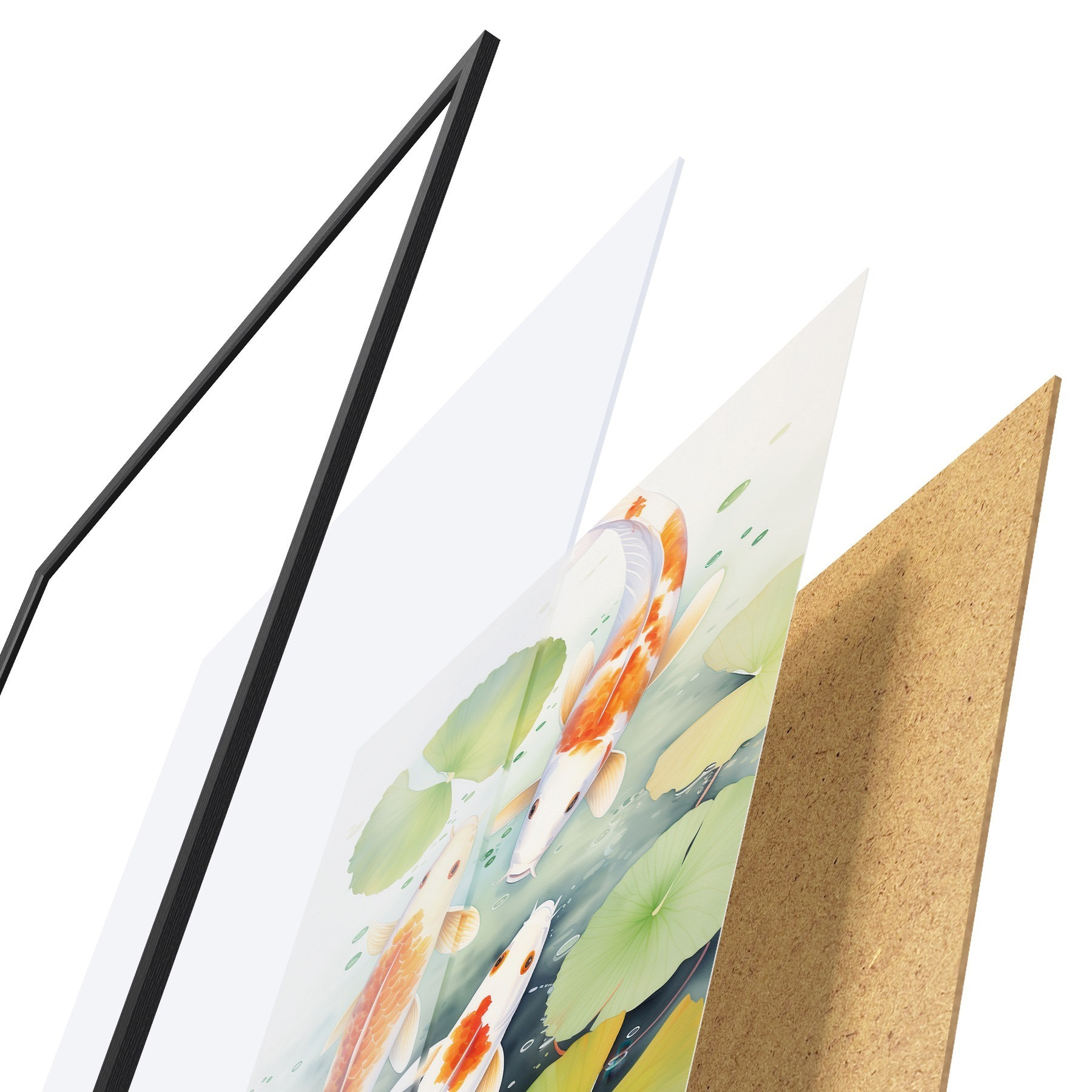 El póster consta de marco, plexiglás, imagen impresa y soporte de aglomerado. El póster puede colgarse inmediatamente en la pared gracias a los soportes de la parte posterior.