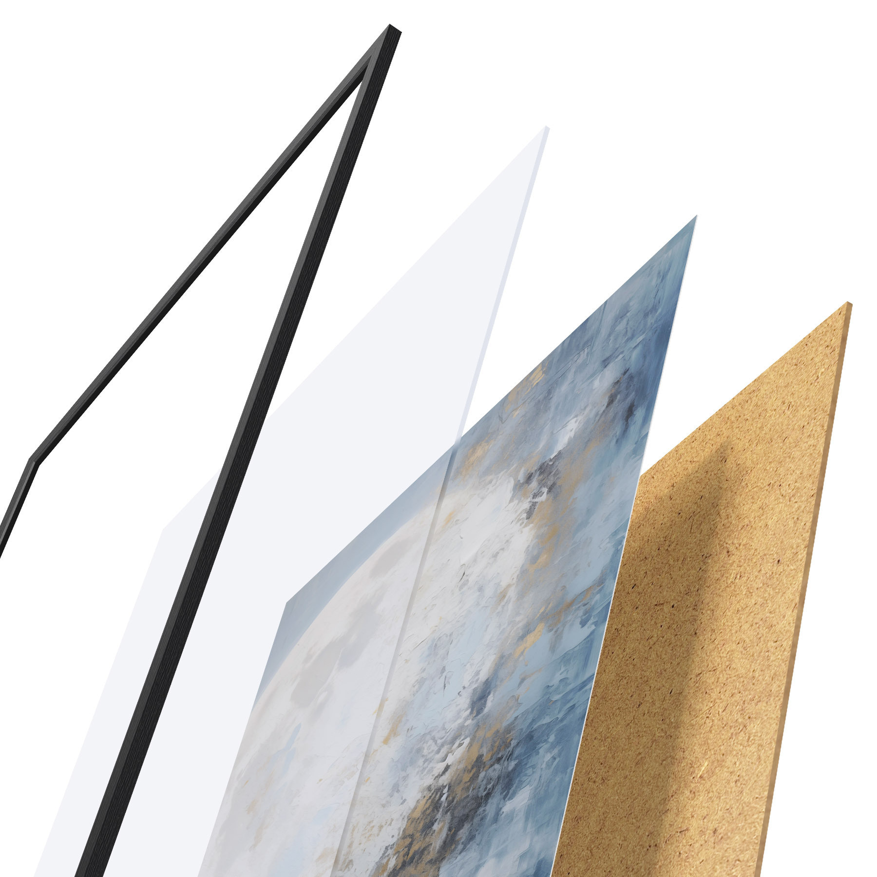 El póster consta de marco, plexiglás, imagen impresa y soporte de aglomerado. El póster puede colgarse inmediatamente en la pared gracias a los soportes de la parte posterior.