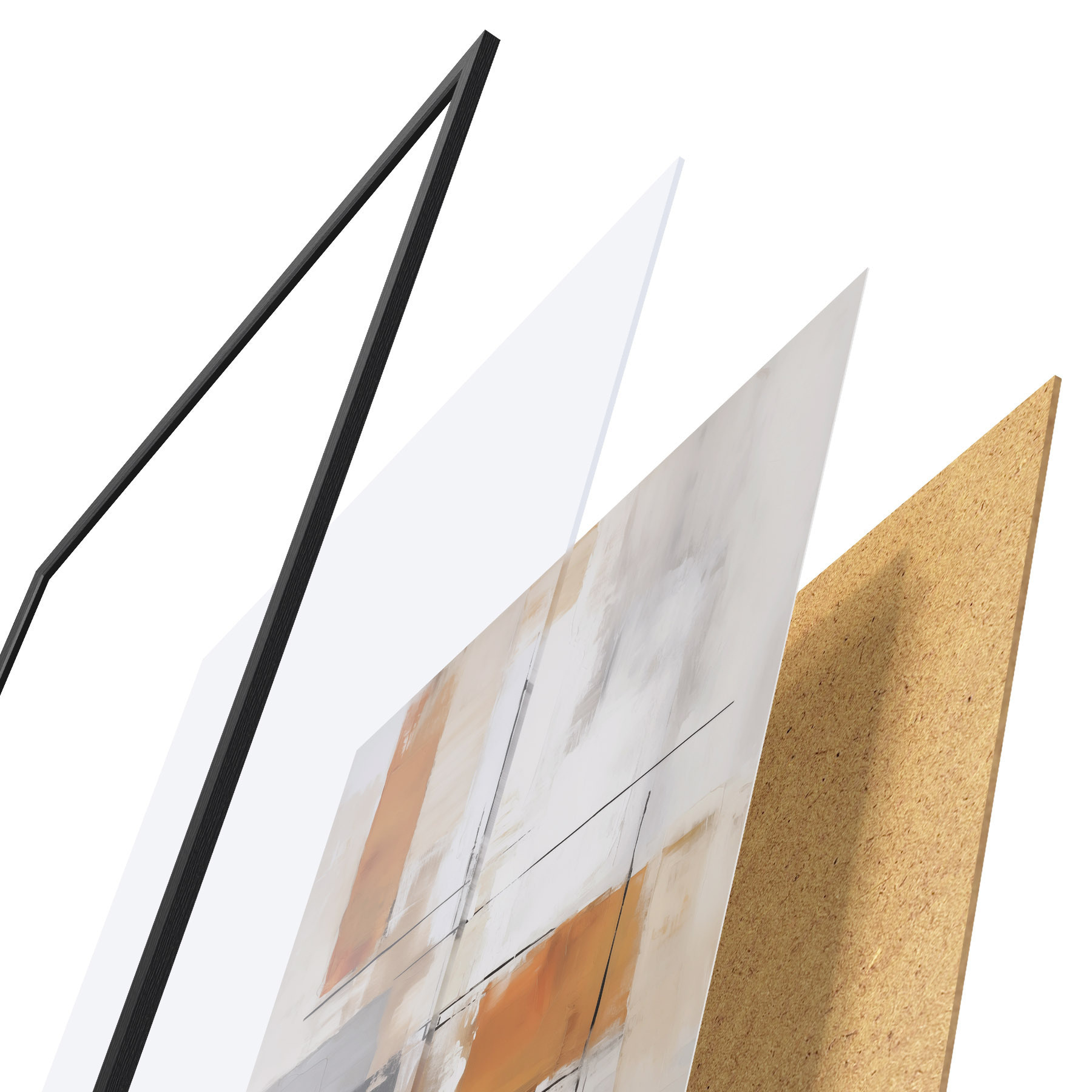 El póster consta de marco, plexiglás, imagen impresa y soporte de aglomerado. El póster puede colgarse inmediatamente en la pared gracias a los soportes de la parte posterior.