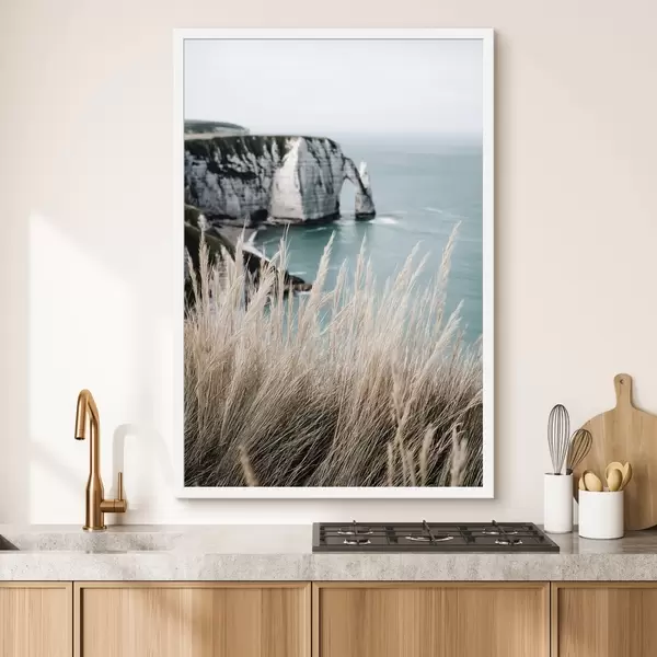 Poster Mar y arco de roca, vista a través de la hierba seca Nr f46142