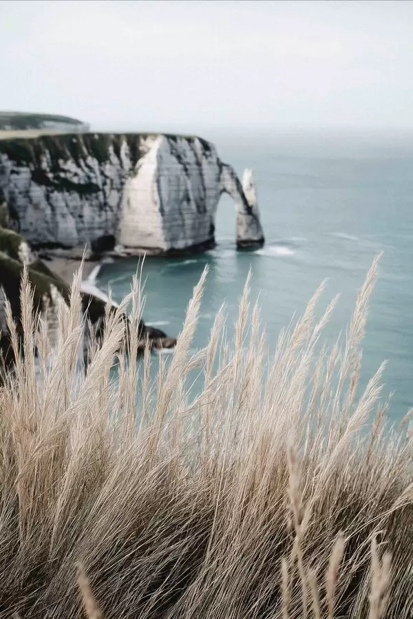 Poster Mar y arco de roca, vista a través de la hierba seca Nr f46142